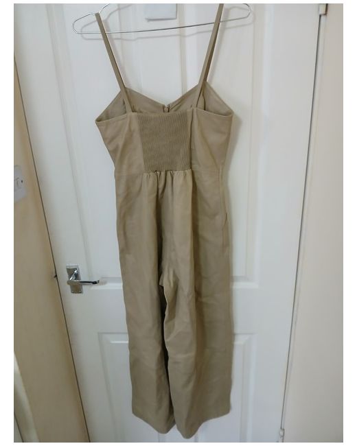 Whistles Neutral Leather Jumpsuit featuring thin shoulder straps and a fitted bodice.