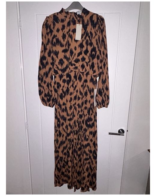This Never Fully Dressed women's wide leg leopard print jumpsuit in size 8 is a stylish and versatile addition to any wardrobe. The one-piece outfit features a flattering bell sleeve and a comfortable regular fit, making it perfect for casual occasions. With its bold animal print pattern and wide-leg design, this jumpsuit exudes a trendy and playful vibe. Easy to care for with its machine washable fabric, this jumpsuit is a must-have for any fashion-forward woman looking to make a statement. Stunning Jumpsuit from Never Fully Dressed will most definitely turn heads and will attract compliments!! Look like a top and trousers as the top section hangs over the legs slightly creating a 2 in 1 look
