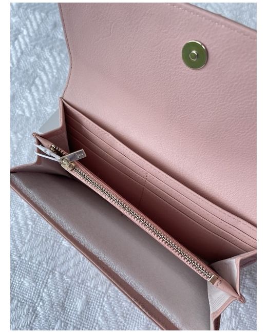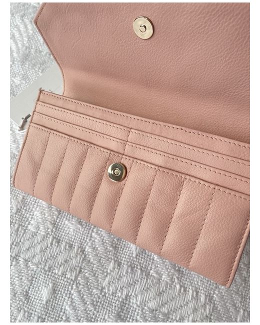 Women's Pink Leather Purse Mid Quilted Envelope Large Fold Wallet BNWT RRP 89
