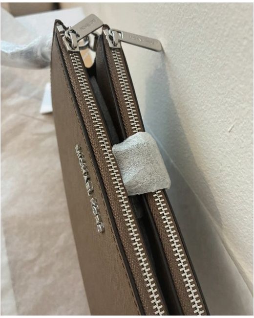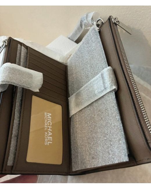 The Michael Kors Women's Leather Wallet is a stylish and practical accessory for women. Made from high-quality leather, this wallet features a zip-around closure and multiple credit card slots, making it perfect for organizing your essentials. The signature Michael Kors logo adds a touch of luxury to the wallet, which comes in a sophisticated brown colour. Perfect for everyday use or special occasions, this wallet is a timeless piece that combines fashion and functionality.