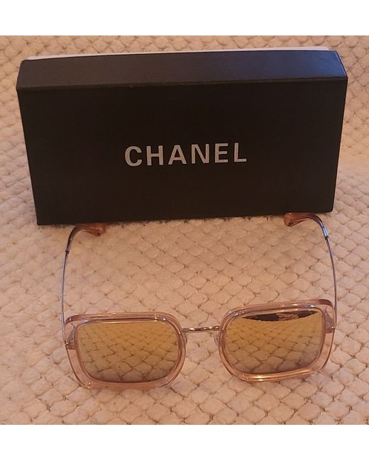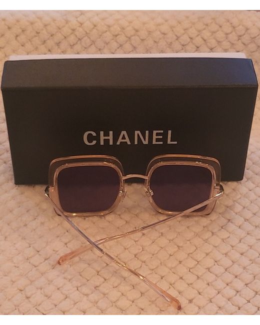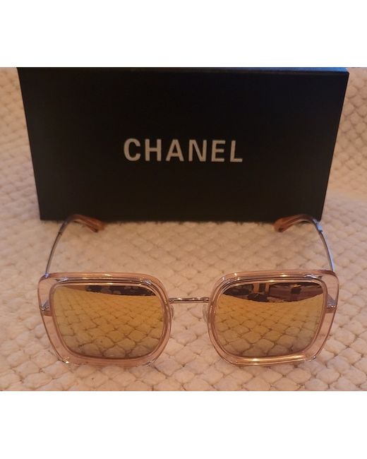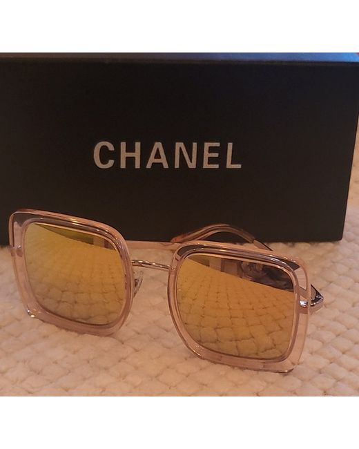 👓These Chanel sunglasses from the 2020 Collection feature a stylish square design with mirrored, tinted gold plastic lenses offering UV400 protection. The frame is made of gold plastic with a width of 137mm and a height of 56mm, creating a sleek and sophisticated look. Designed for women, these sunglasses are a fashionable accessory that exudes luxury and elegance, crafted in Italy by the renowned brand Chanel. With a temple length of 140mm and a unique Chanel model number 4240, these sunglasses are a must-have for any fashion-forward woman, Had New Tinted Gold Lenses, Comes With All You 👀 no returns Thank you.