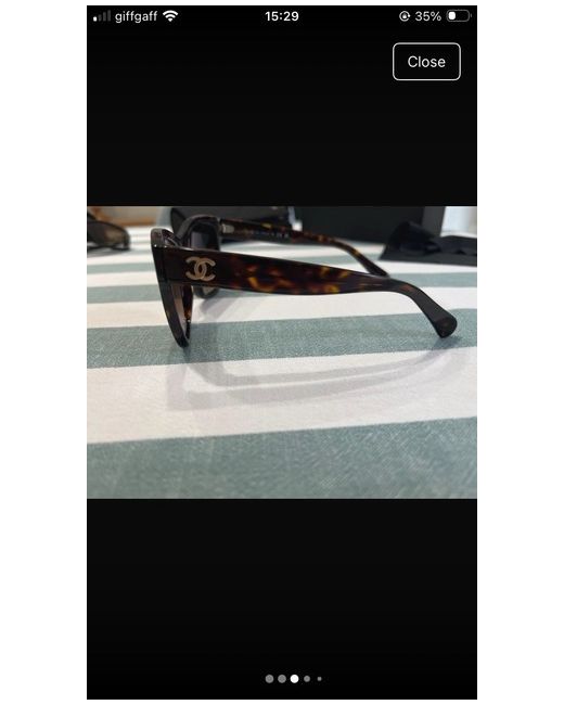 The Chanel Sunglasses are a stylish and high-quality accessory for women. With a classic brown plastic frame and tinted plastic lenses offering UV400 protection, these designer sunglasses exude luxury and sophistication. The iconic Chanel brand ensures a sense of timeless elegance, making these sunglasses a must-have for any fashion-forward individual looking to elevate their summer look. With a temple length of 135mm, these sunglasses provide both protection and style in one chic package.