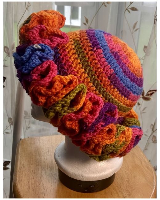 This handmade crochet ruffle hat is a versatile accessory perfect for casual occasions year-round. Made from acrylic material with a crochet fabric type, the hat features a multicoloured ruffle accent and has a stretchy design for a comfortable fit. Ideal for women, the hat is a unique and stylish addition to any outfit, whether for winter, autumn, summer, or spring. Handmade with care and attention to detail, this one-size hat is a stand-out piece in any wardrobe.