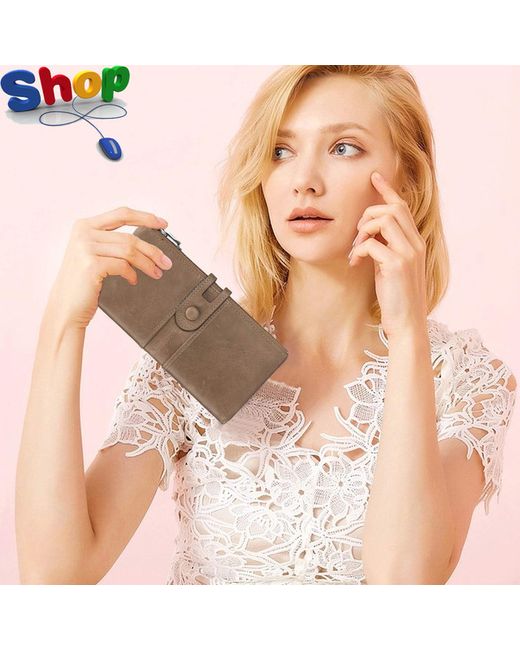 Women's Multicolor Genuine Leather WalletsMulti-Function Slim Bifold Zipper Clutch PurseL