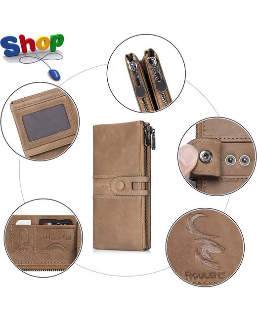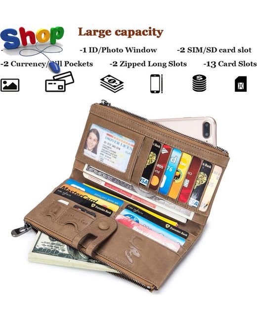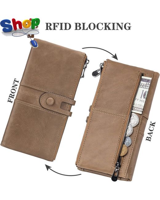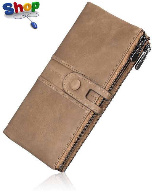 Genuine Leather WalletsMulti-Function Slim Bifold Zipper Clutch PurseL