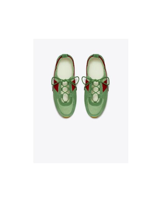 The Hank ballet sneaker combines the graphic simplicity of a retro running shoe with the ease and flexibility of a flat. Set on an ultra-slim rubber sole, the lightweight silhouette features soft ruching around the topline and is crafted in a mix of suede and 100% recycled nylon.