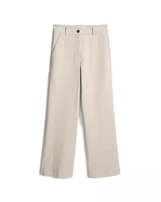 light beige side seam pockets belt loops button closure wide leg woven finish