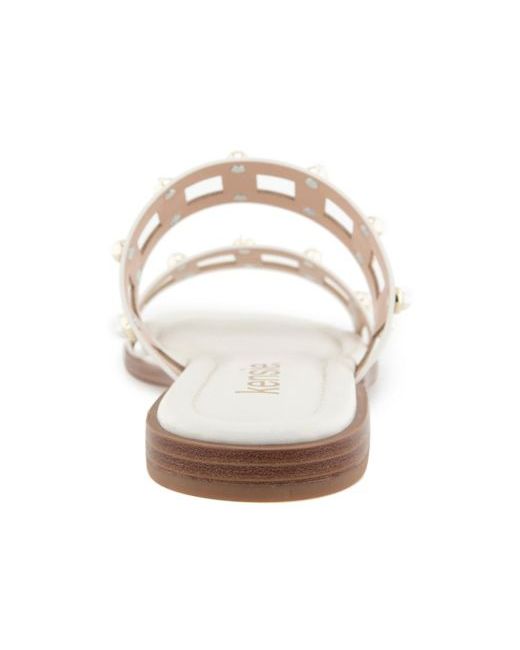The Kensie Rosaly is a chic flat slide sandal featuring two bands accented with subtle studs, combining effortless comfort with a touch of modern edge.