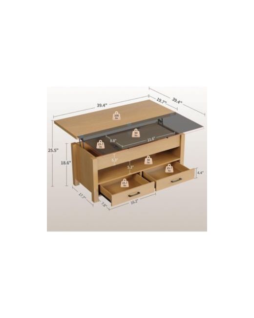 Women's Multicolor 40x22 Coffee Table Lift Top Multi-Function Convertible with Drawers and Hidden Compartment Converts to Dining for Livin