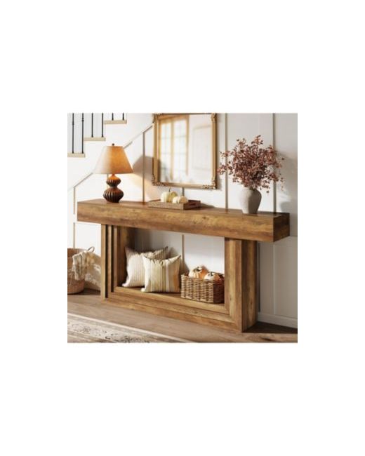 Measuring 63"D x 11.8"W x 32.3"H, the couch console table with neutral color and simple design can blend seamlessly with diverse interior styles, including modern, rustic, and farmhouse, making it a perfect fit for any room.