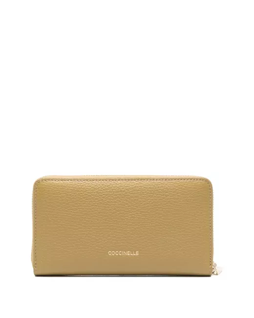 seagrass green zip closure logo detail gold-tone hardware grained texture