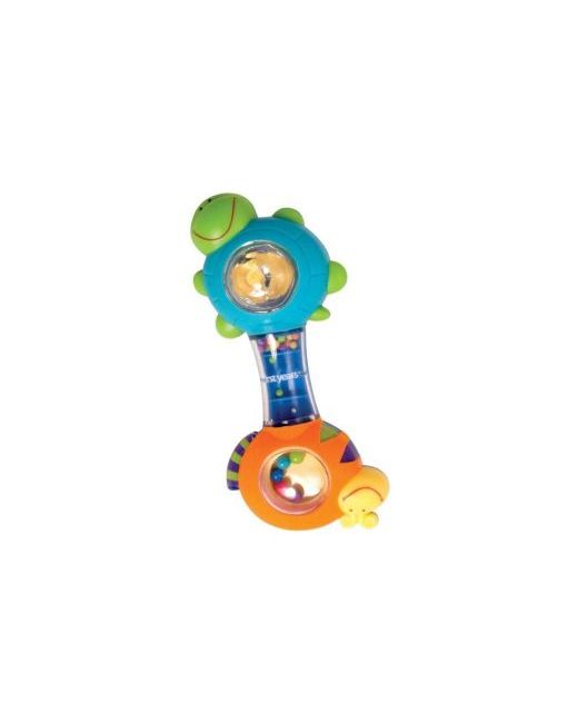 3 months and up. Invite babies to explore the many activities found in this set of five rattles. Features include bright colors, spinning balls, black and white contrast, and easy grip handles. Styles and colors will vary.