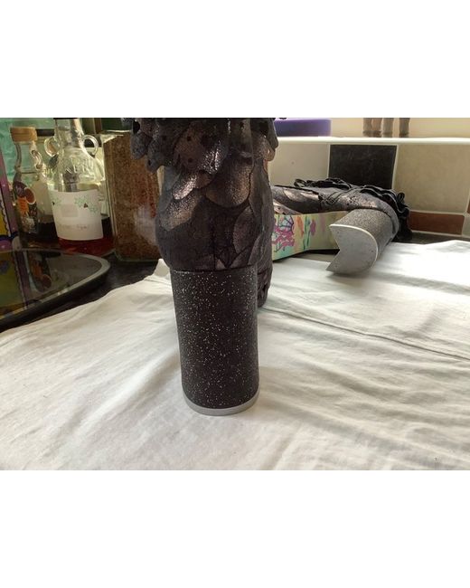 Irregular choice Frilly Knickers ankle boots. New with original box. Black/gold colour with rose pattern all over. Double frill around top of boot. Side zip opening. Lace front doesn’t open. Heel height is 9.5 cm and platform height is 3.5 cm. Printed picture on sole.