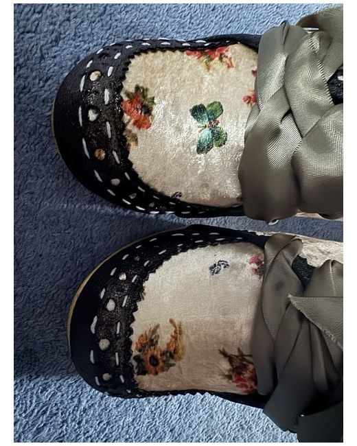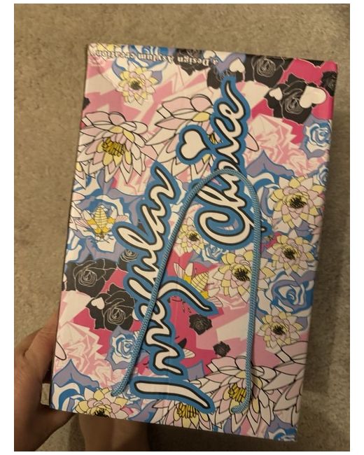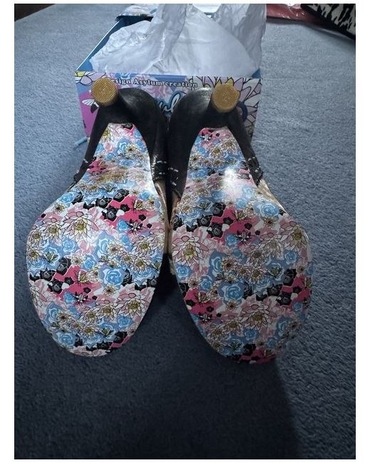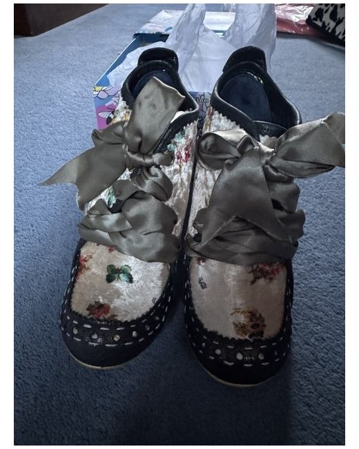 Important to note and shown in photos - box is faded but shoes unworn and in perfect condition. Abigail’s party heels in gorgeous green and fabric with flowers and butterflies.