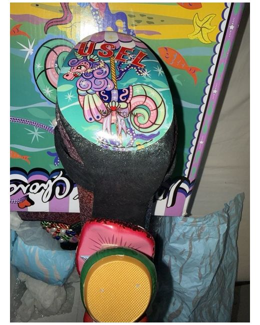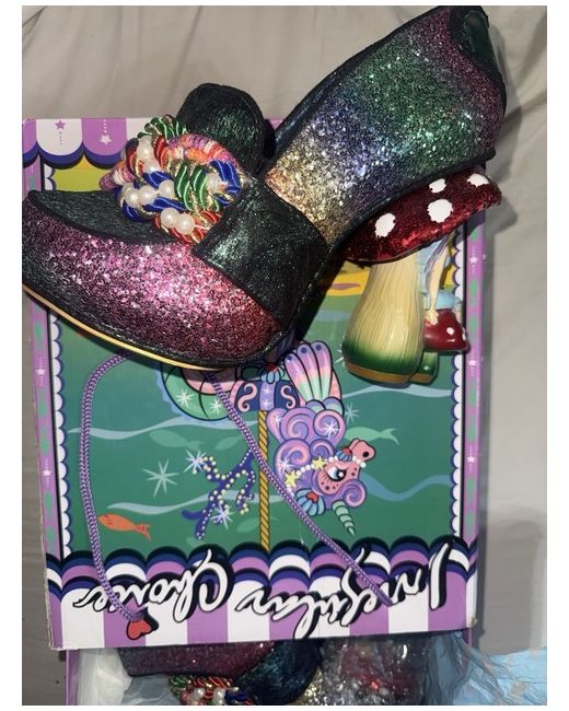 Irregular Choice Hazel Corntree concept heels with a hand-painted fairy and glitter-encrusted toadstool heel, and a shimmery toe band with a black, white, and pearl thread weave Box not new as they were kept in wardrobe for so long !!!