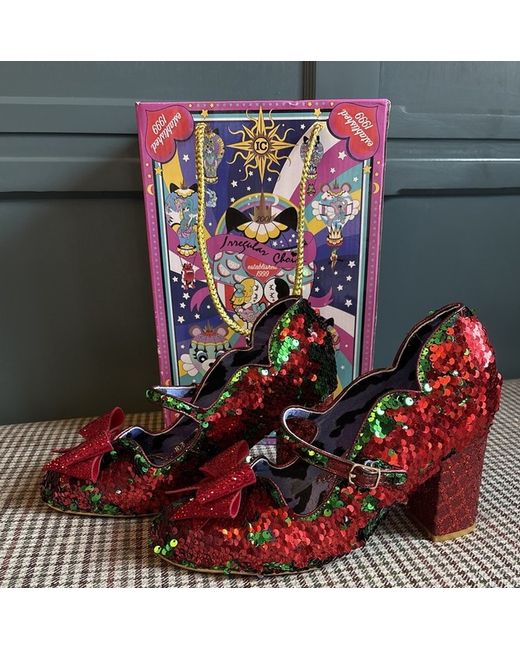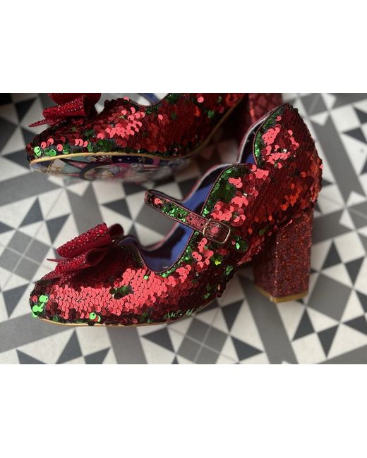 Irregular Choice Ladies "Danity" Red And Green Sequins Heeled Shoes EU Size 43/UK Size 8.5 Bow detail at the front Buckle fastening All over sequins. The sequins can be pushed forward or back to change the colour of the shoes from Red to Green Bought but never worn
