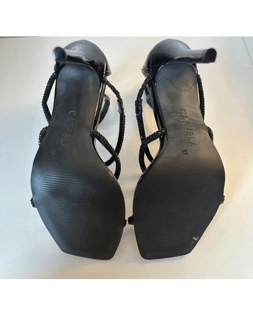 These Cavela heels in size 4 are the perfect addition to any woman's shoe collection. The sleek black stiletto heel with a strappy design is ideal for parties or cocktail events. Perfect for adding a touch of elegance to a night out or special event. Never worn but slight marking on bottom of shoe