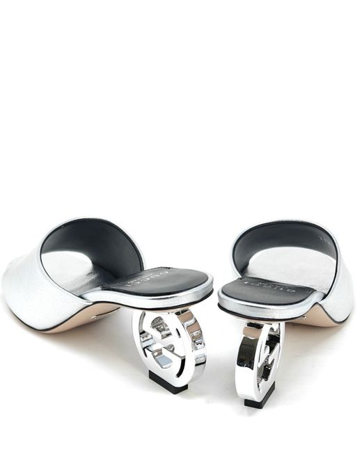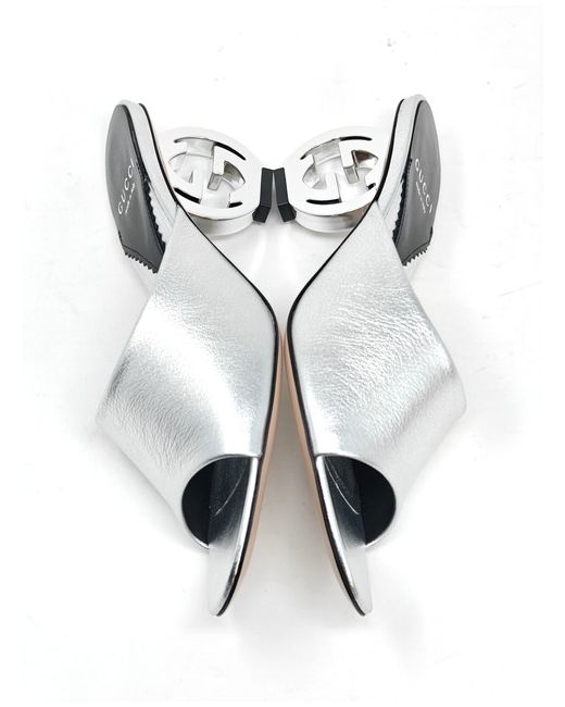 Women's Silver Marmont Heels Leather GG Base Interlocking Mule UK 4 EU 37 US 7 111