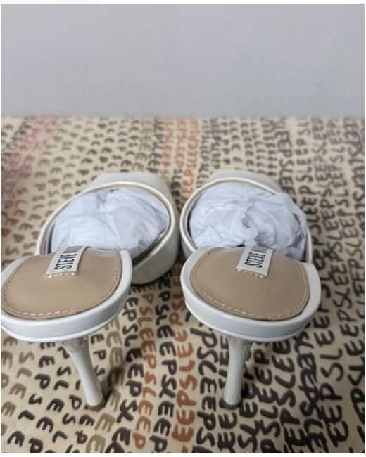 PLEASE READ BEFORE BUYING Please measure your feet according to the size chart The Steve Madden Priya Heels are stylish stiletto heels in a classic white colour, perfect for a casual occasion. Made from patent leather and leather, these size 3 UK and 5 US shoes feature a mule style with a standard shoe width. The brand's signature style is showcased in these timeless heels, making them a versatile addition to any woman's wardrobe.