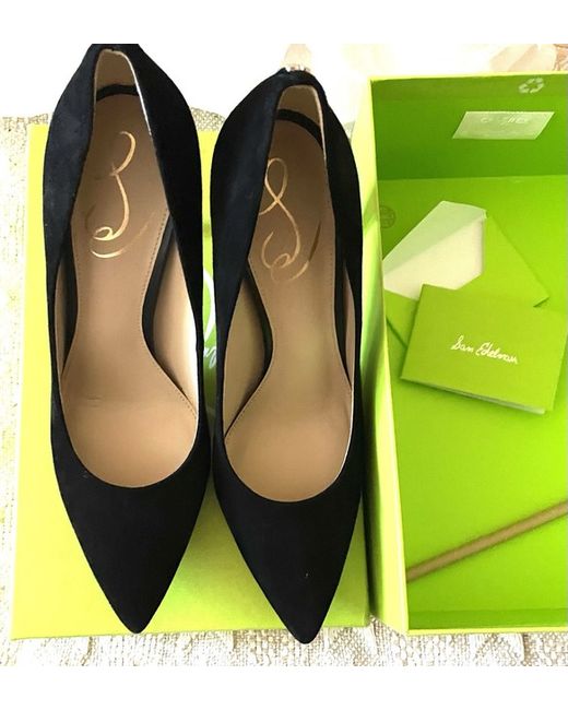 The product is a stylish pair of women's shoes in size 4 by the brand Sam Edelman. These black stiletto heels are perfect for a party or cocktail occasion, with a sleek court style design. Made from suede, these shoes are a versatile option for autumn, winter, summer, and spring seasons. With a standard shoe width, they are both fashionable and comfortable for any elegant event.