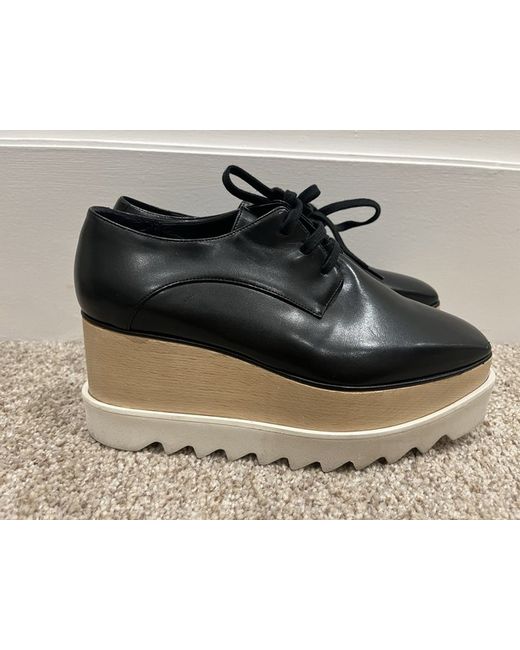The Stella McCartney Elyse platform shoes in EU38 are stylish and sophisticated heels designed for women. Made from faux leather in a sleek black colour, these platform shoes feature a high heel and are perfect for adding a touch of glamour to any outfit. With the iconic Stella McCartney branding, these shoes are sure to make a statement and elevate any ensemble.