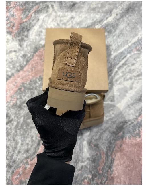 UGG Classic Mini Boot - Size 6UK Womenâs - Chestnutđ€ - Fast Deliveryđ The UGG Classic Mini Platform Boot in Chestnut is a stylish and comfortable women's ankle boot, perfect for casual occasions this winter. Featuring a round toe shape, low wedge heel, and lined with sheepskin for added warmth and comfort, these boots are a fashionable choice with a touch of luxury. Made with suede upper material and a durable rubber outsole, these UGG boots are designed for all-day wear and showcase the brand's iconic logo detail. With a UK shoe size of 6 and a European size of 39, these boots offer a perfect fit and a trendy look for any fashion-forward woman.