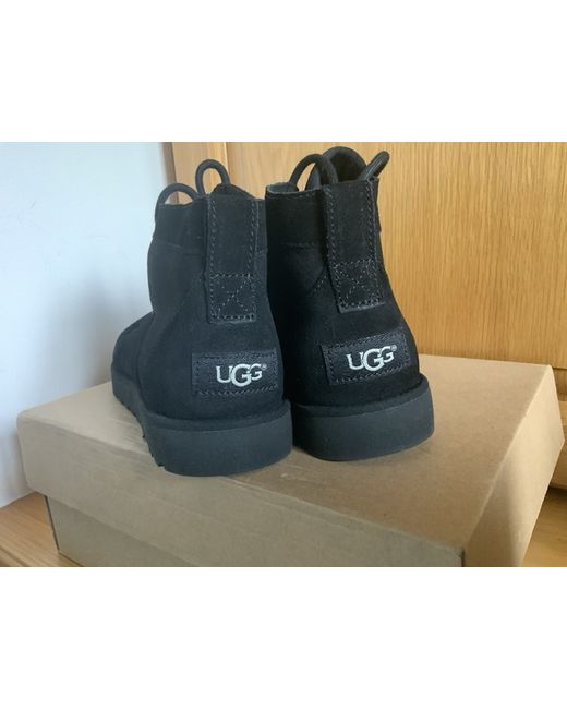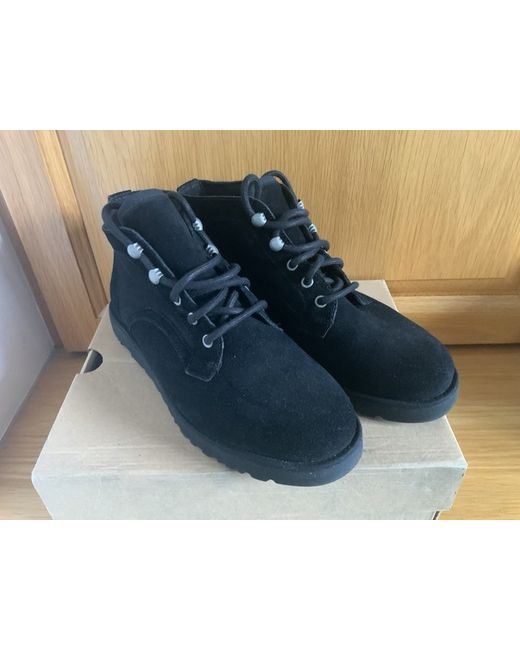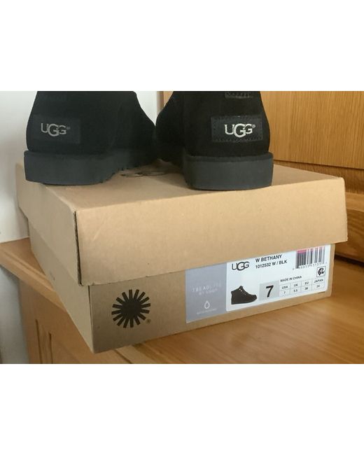 The UGG Boots Bethany in size 5.5 for women in black is a stylish and comfortable ankle boot perfect for casual occasions. Featuring a round toe shape, low heel, and sheepskin lining, these boots offer both warmth and support during the winter season. Made with a combination of nubuck and canvas upper material, these UGG Australia boots feature the brand's signature logo accents, making them a fashionable choice for any woman looking for a quality and trendy footwear option.