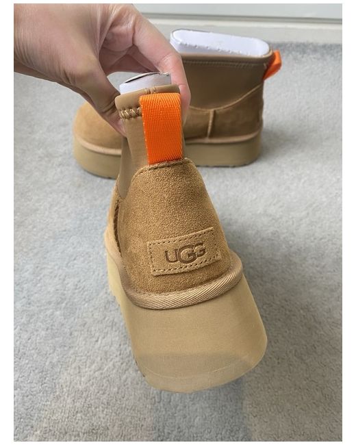 With all the ease of the Classic Dipper and a shorter shaft length, just like the Classic Mini, this boot is perfect for wearing under straight jeans or cropped trousers. Suede heel label with embossed UGG® logo.