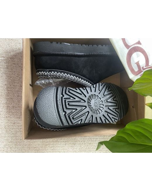 The Black Tasman Uggs are a stylish and comfortable pair of ankle boots from UGG Australia. With a round toe shape and low heel height, they are perfect for casual occasions during the winter season. Made from suede and featuring the signature UGG logo accent, these slip-on boots in standard shoe width are a must-have for any woman's wardrobe. The rubber outsole provides durability and support, making them a practical and fashionable choice for the colder months.