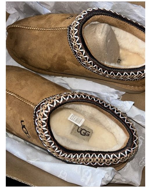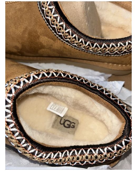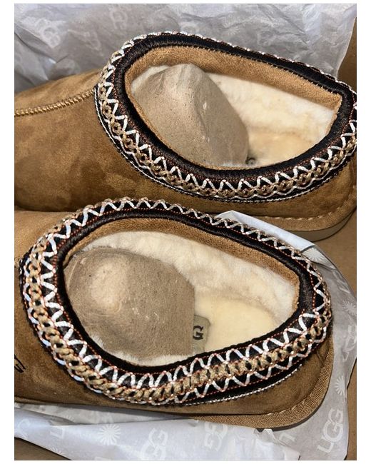 The Uggs Tasman II boots are a stylish and comfortable choice for women in UK shoe size 5 or US shoe size 7. With a round toe and mid heel height, these ankle boots feature sheepskin lining for added warmth in the winter season. The slip-on style and rubber outsole make them easy to wear and durable, while the brown suede upper and logo accents add a touch of sophistication to the casual occasion. Perfect for those looking for comfort and style in a classic UGG Australia product.