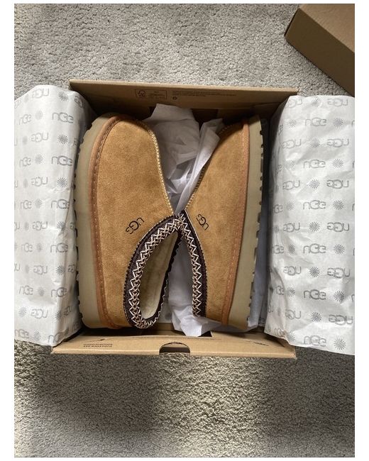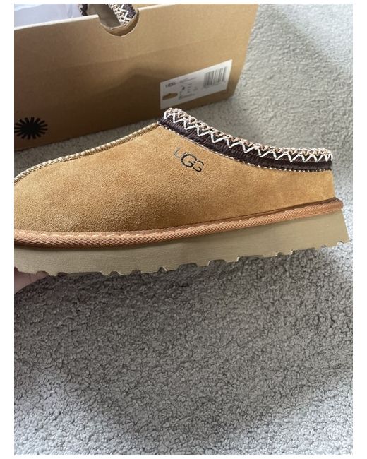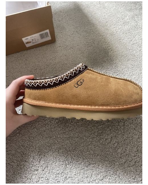 The Tasman UGG Chestnut Size 6 boots are a stylish and comfortable choice for casual occasions during the winter season. Featuring a round toe, low heel, ankle shaft style, and slip-on design, these boots are made of suede with sheepskin lining for added warmth and luxury. The brown colour and logo accents add a touch of sophistication to this classic UGG Australia boot, perfect for women who want both fashion and function in their footwear. Made in Australia, these boots are designed to be a staple in any woman's wardrobe.