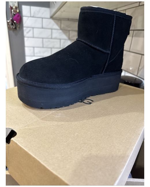 Sugarcane EVA outsole or Treadlite by UGG™ EVA outsole. The UGG® Logo, embossed suede heel label. It's made with a rich suede and lined inside with our UGGplush™ blend for signature softness. 2" platform height.