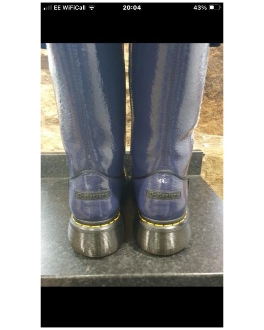 Ladies Dr Martens Buzz Hi Eclipse Dark Blue Distressed Patent Leather Platform Boots Size uk 6/39 ( SOLD OUT IN 6/39 on Dr marten and office . Inner zip for easy on/off with a velcro strap at top Rubberised branded patches and sport inspired piping details Distressed Patent leather catches light to show textured appearance Platform sole with the leaf pattern unique to the Buzz sole Rrp £190 Brand new no box Please see my page for More Dr Martens 😊