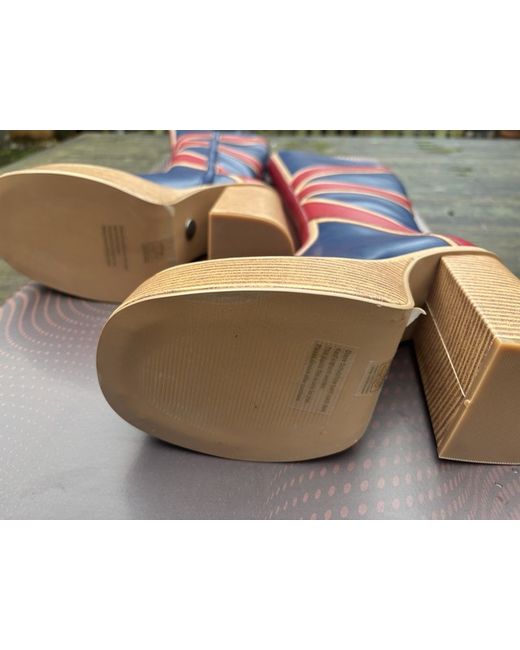 The Union Jack Boot, designed by Sinead Corey in size 3, is a stylish and patriotic addition to any woman's wardrobe. Made from faux leather with ,these boots feature a platform style with a high heel, perfect for adding a touch of glamour to any outfit. The red, white, and blue colour scheme makes them a bold statement piece, perfect for those who want to show off their British pride. The Buffalo brand ensures quality and durability, making these boots both fashionable and practical for any occasion.