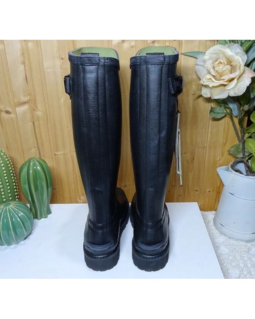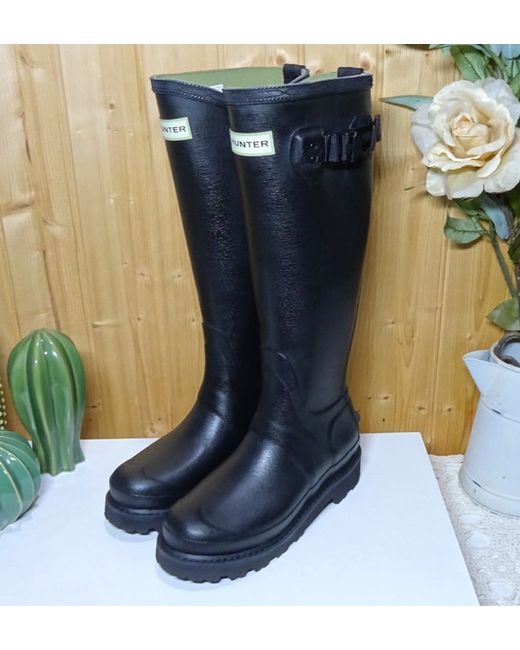 These women's Hunter Balmoral II Polyester Lined Wellingtons are in Black with an adjustable strap. They feature the technical Vibram sole. UK size 3. RRP £225. These boots are brand new and come with their original box and tags attached. Designed for the walks and adventures on the wet and cold of days, the Women's Hunter Balmoral Side Adjustable Tech Sole Boots are handcrafted from natural rubber with soles which offer shock absorption and multi-directional cleats for grip and mud release.