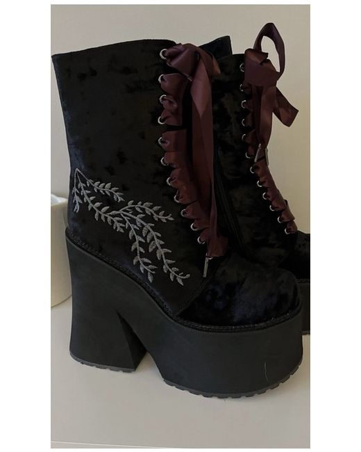 Only tried on but I can’t walk in them 🤣 not due to any fault of the boots I’m just not used to walking in heels or even platforms They do seem very stable though due to how chunky the sole is Beautiful velvety material Burgundy (and black set) ribbon for laces Zip on the side