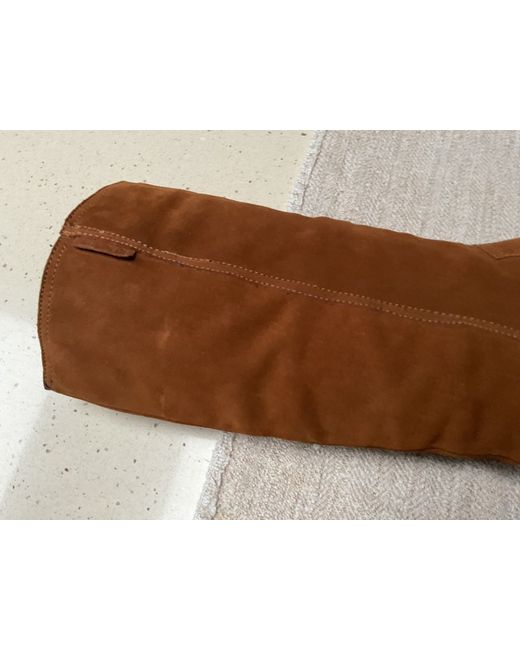 Red or Dead soft suede boots.. .. Size 5 UK 38 EU .. Ginger suede with fab lilac contrasting stitching.. .. Easy pull on style… .. Not worn so remain in great condition..However these boots are quite vintage now so please view all the pictures as they will give you the best overall description.. .. I have listed as new with defects due to the fact the boots have been stored for a number of years so may have the odd faint mark..