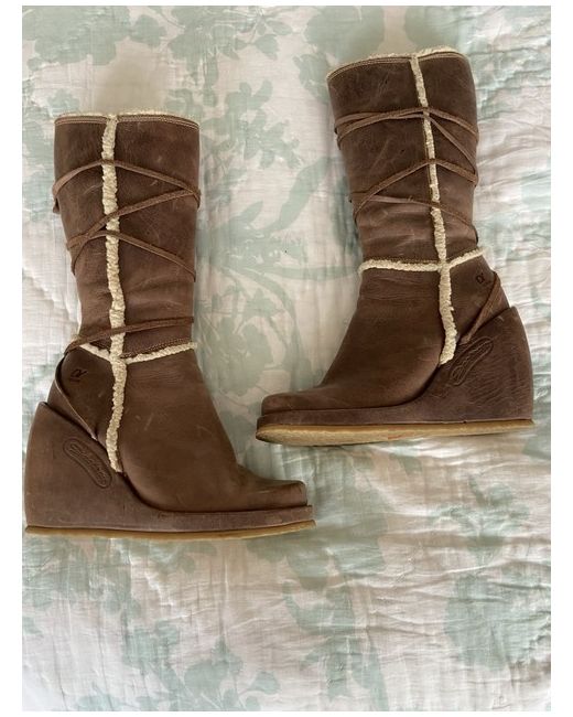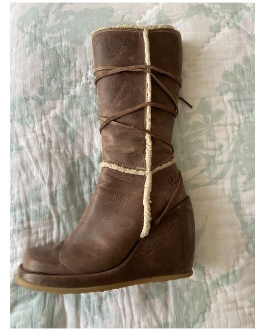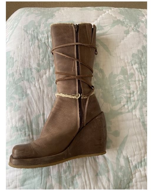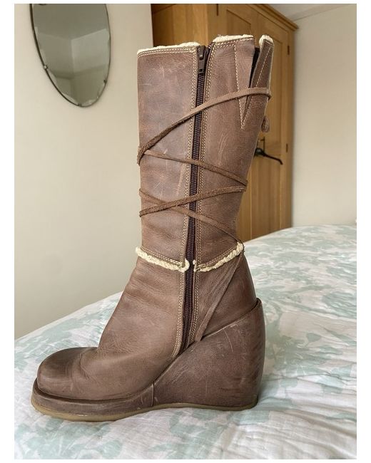 Women's UK size 5 brown leather iconic platform boots by Destroy. These have never been worn. However, they have been in storage and unfortunately the original box was damaged when moving home. Therefore, they will be posted in a an alternative box. Please see photos.