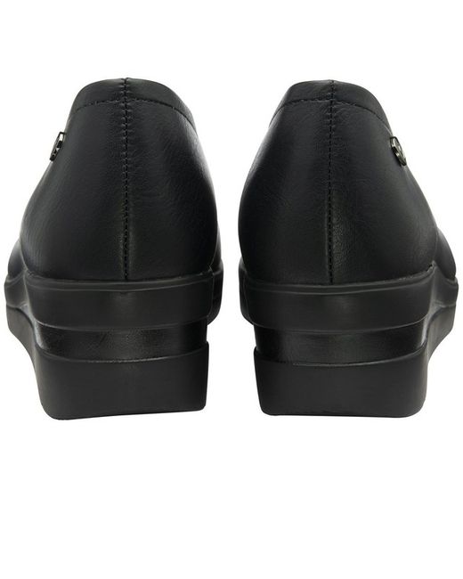 Resting on a 4cm wedge heel, this round toe shoe is at the height of wearability. Fastening: Slip On. Fitting: Standard. Sole: Synthetic. Lining: Textile / Synthetic. Upper: Synthetic.
