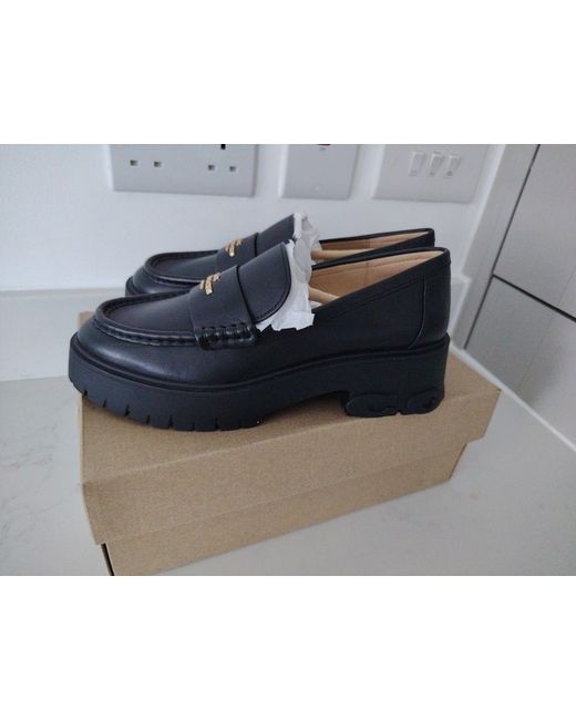 The Coach Black Loafers in UK size 5 (US size 7, EU size 37.5) are a stylish and versatile option for women. With an almond toe shape and slip-on closure, these leather loafers feature the signature Coach logo on the front. Perfect for travel, casual outings, or business meetings, these black loafers offer comfort and convenience with cushioned insoles and waterproof construction. Whether for winter, autumn, summer, or spring, these Coach loafers are a timeless addition to any wardrobe. Made in Vietnam, this pair comes with both style and quality.