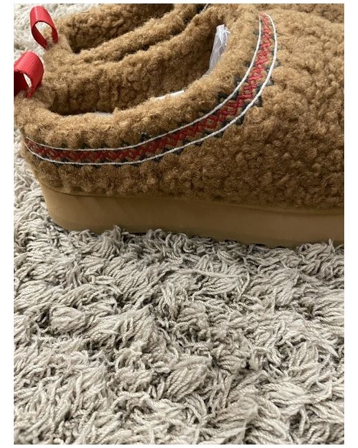 This Brown Teddy Ugg Tazz slipper in UK size 6 is perfect for casual occasions during the winter season. With a round toe, low heel, and comfortable design, these UGG Australia slippers feature a slip-on closure for easy wear. Made from suede with a rubber outsole, they offer both style and comfort. The platform style and logo accents add a trendy touch to these cosy and personalised slip-on shoes.