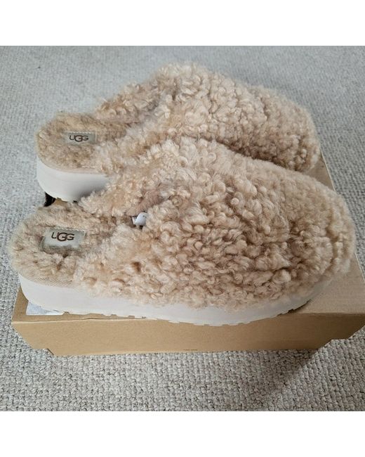 With a low heel height and round toe shape, these slippers feature the signature UGG Australia logo as accents. Sole: A chunky, molded rubber platform outsole that follows current fashion trends.