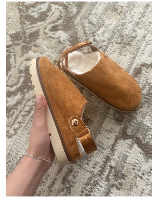 Super cosy and warm with soft sheepskin lining inside. Slip-on mule style with elastic back strap for extra support. Thick platform sole – really comfy and perfect for autumn/winter. In great condition – minimal signs of wear as shown in photos. No major marks or damage. Colour: Camel Brand: UGG Style: Platform slipper / mule Perfect for lounging at home or running quick errands Message me if you’d like more photos or details!
