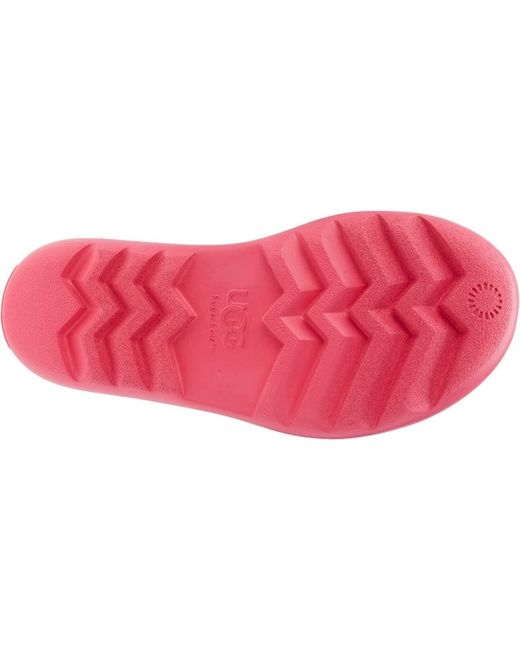 The Mini Slide makes it easy to stay stylish on the go. Its upper, made from 100% recycled polyester fibers, features a great-looking, oversized logo. A foam footbed, padded foam upper, and an ultra-lightweight outsole offer soft-feeling wear. Style them with a shirt dress you love. The outsole of this product is either a SugarSole outsole, which is a responsible compound using sugarcane foam that allows us to reduce dependency on fossil fuels by replacing petroleum-based ethylene, or a Treadlite by UGG outsole.