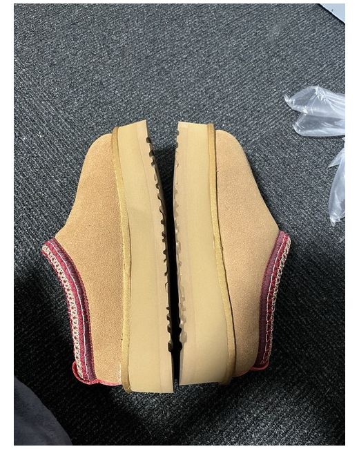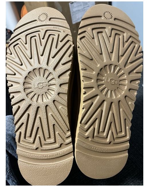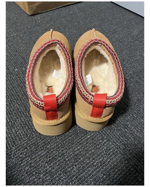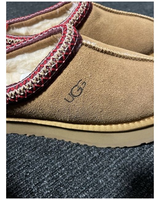 This product is a pair of UGG Australia women's slippers in size 6. The slippers feature a round toe shape, slip-on closure, low heel height, comfortable suede upper material, rubber outsole, and standard shoe width. They are designed for casual occasions in the winter season, with a brown logo accents adding a touch of style. The UGG Tasman model from the Ugg Classic product line offers comfort and warmth, making them a cozy and stylish choice for women's footwear.