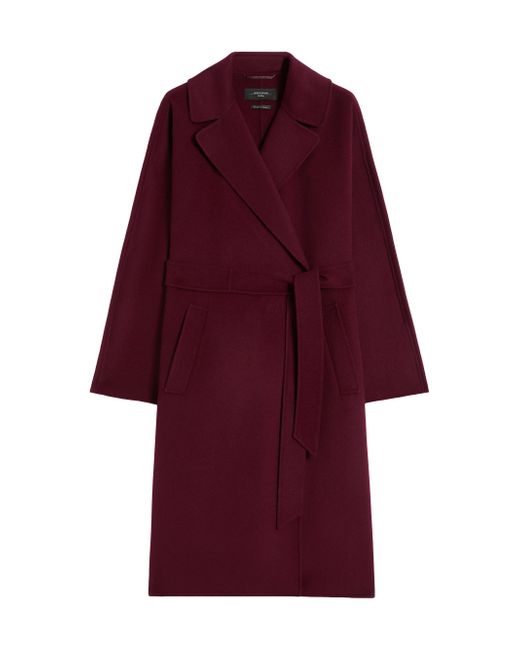 Midi robe coat. Coat in hand-sewn double-faced wool-blend fabric Straight cut Lapel collar Long kimono sleeves with a raglan cut at the back Matching waist belt Welt side pockets Unlined model Fabric 90% virgin wool, 10% polyamide - except joining thread Do not wash, do not bleach, do not tumble dry, cool iron, professionally dry clean perchloroethylene - mild process, do not wet clean Imported. Lsd Rtw - Womens Rtw Lsd Mp > Weekend Max Mara > Saks Fifth Avenue. Weekend Max Mara. Color: Bordeaux. Size: 0.