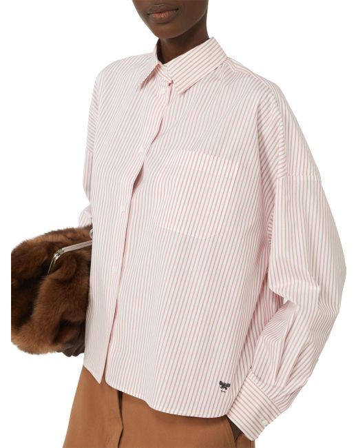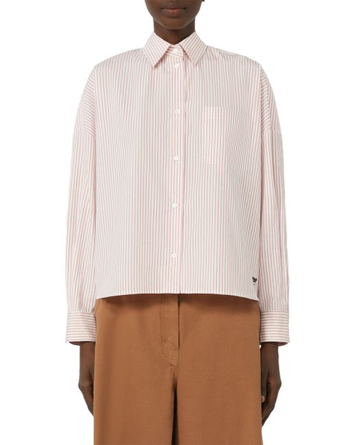 Oversized shirt featuring a small embroidered butterfly logo on the front hem. Shirt in pure cotton poplin fabric Shirt collar and double cuffs Long sleeves with dropped shoulders Front button fastening Patch breast pocket Yoke seam and side pleats on the back High-low rounded hem design Fabric 100% cotton; exclusive of embroideries Machine wash cold delicate cycle; do not bleach; do not tumble dry; line drying in the shade; cool iron; professionally dry clean perchloroethylene mild process.; wash the garment while it is fastened; turn the articles inside out before washing; contains non-textile parts of animal origin Imported. Lsd Rtw - Womens Rtw Lsd Mp > Weekend Max Mara > Saks Fifth Avenue. Weekend Max Mara. Color: Pink. Size: 0.