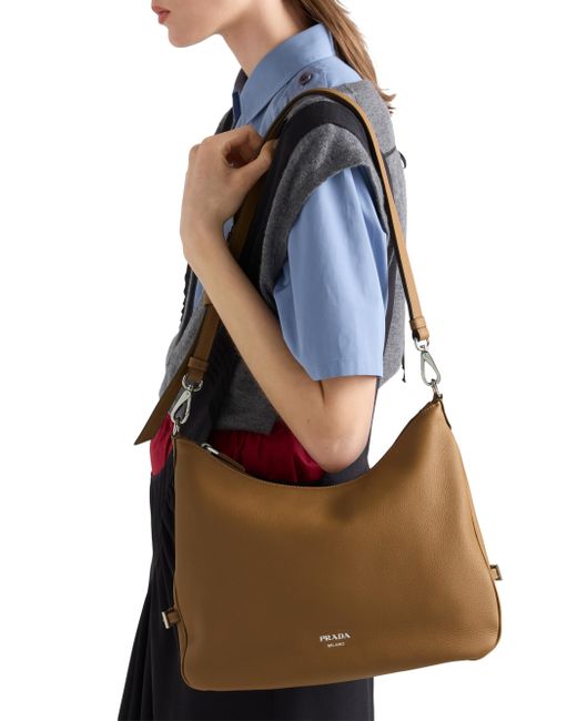 Adjustable leather shoulder strap Metal hardware Embossed lettering logo on the front Zipper closure Logo-print nylon lining with two pockets, including one with zipper Imported 100% Calf Leather 33 cm W x 28 cm H / 13.0'' W x 11.0'' H. Lsd Handbags - Prada Handbags Access > Prada > Saks Fifth Avenue. Prada. Color: Dark Brown.
