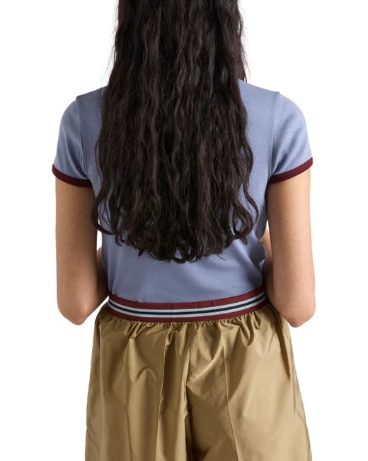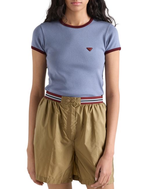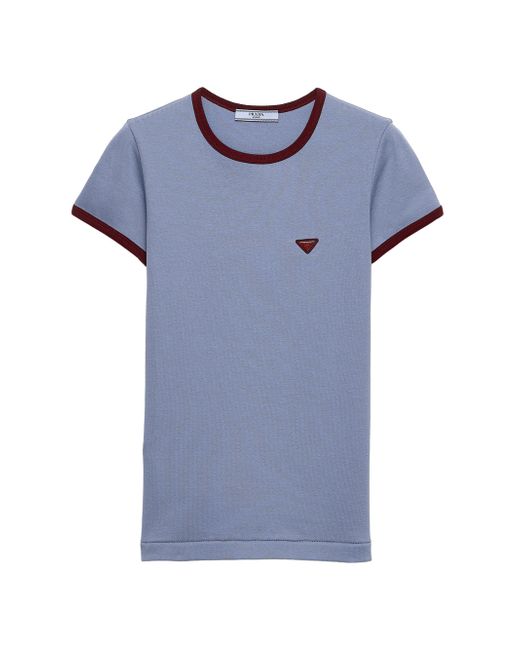 Slim-fit silhouette Ribbed knit crew neck Short sleeves Enameled metal triangle logo 100% Cotton Imported. Lsd Rtw - Prada Rtw > Prada > Saks Fifth Avenue. Prada. Color: Blue. Size: 0.