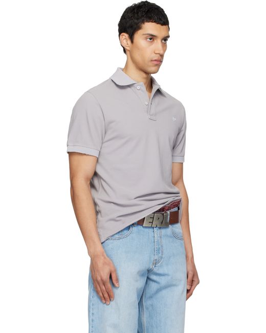 Cotton piqué polo. · Subtle distressing throughout · Rib-knit spread collar and cuffs · Two-button placket · Logo patch at chest · Tennis-tail hem Supplier color: Grey